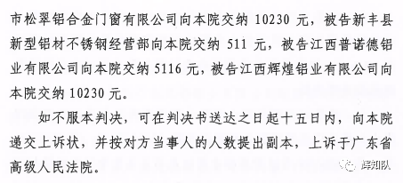 昌吉凤铝系列维权案:诉辉煌公司等四被告,法院判赔250余万